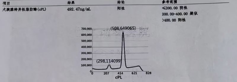 Diagnostiskt resultat: Positivt för hund pankreasspecifikt lipas (cPL)